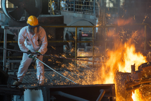 资料图:印尼青山工业园镍铁冶炼车间内,一名印尼工人在生产线上工作。(新华社发)