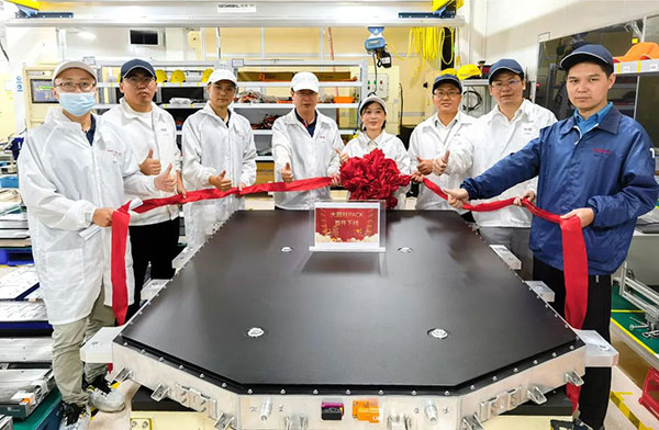 2022-08-09 来源:本站 点击量:3928月2日,亿纬首件搭载自主研发46系列大圆柱电池的系统产品在研究院中试线成功下线。亿纬锂能董事长刘金成博士、电池系统研究院院长江吉兵、供应链管理中心副总裁冯俊卿、科技委员会秘书处主任姚彩芳博士等领导共同见证。