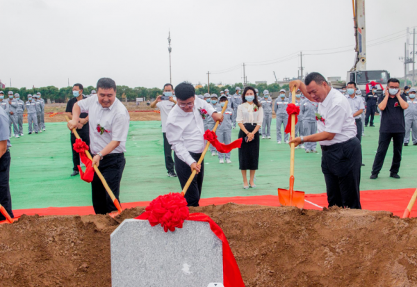 伴随着机械鸣笛声和礼炮声,与会领导共同为奠基石挥锹培土,全场响起热烈的掌声,标志着金车储能18GWH磷酸铁锂电池项目正式启动开工。
