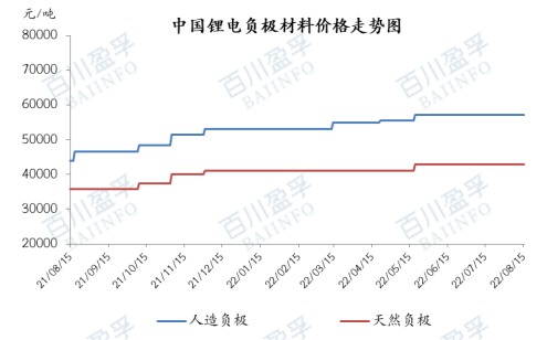近期中国锂电负极材料市场价格以稳为主,目前负极生产企业整体开工良好,订单爆满,排产属于满负荷状态,新能源汽车市场景气度持续攀升,负极材料市场供应紧张,下游电池厂话语权较强,负极材料订单为一单一议,多以长协生产为主,价格变动不频繁,多出现在新订单中,企业积极与客户保持沟通,将产品价格维持在合理区间内。截止2022年8月15日,高端负极主流价格在7.1-7.6万元/吨,中端负极主流价格在5.4-6.2万元/吨,低端负极主流价格在3.8-4.2万元/吨
