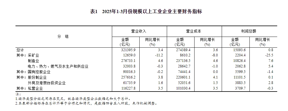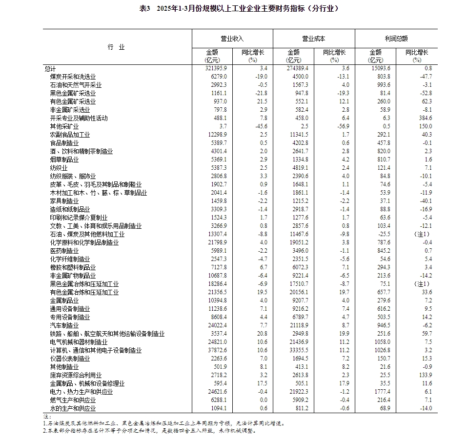 2025年1—3月份全国规模以上工业企业利润增长0.8%