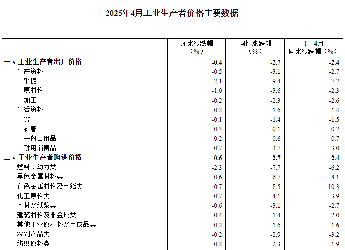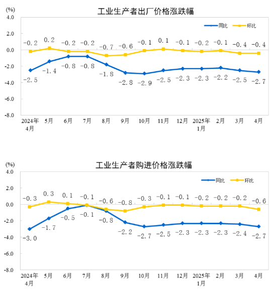 2025年4月份工业生产者出厂价格同比下降2.7%