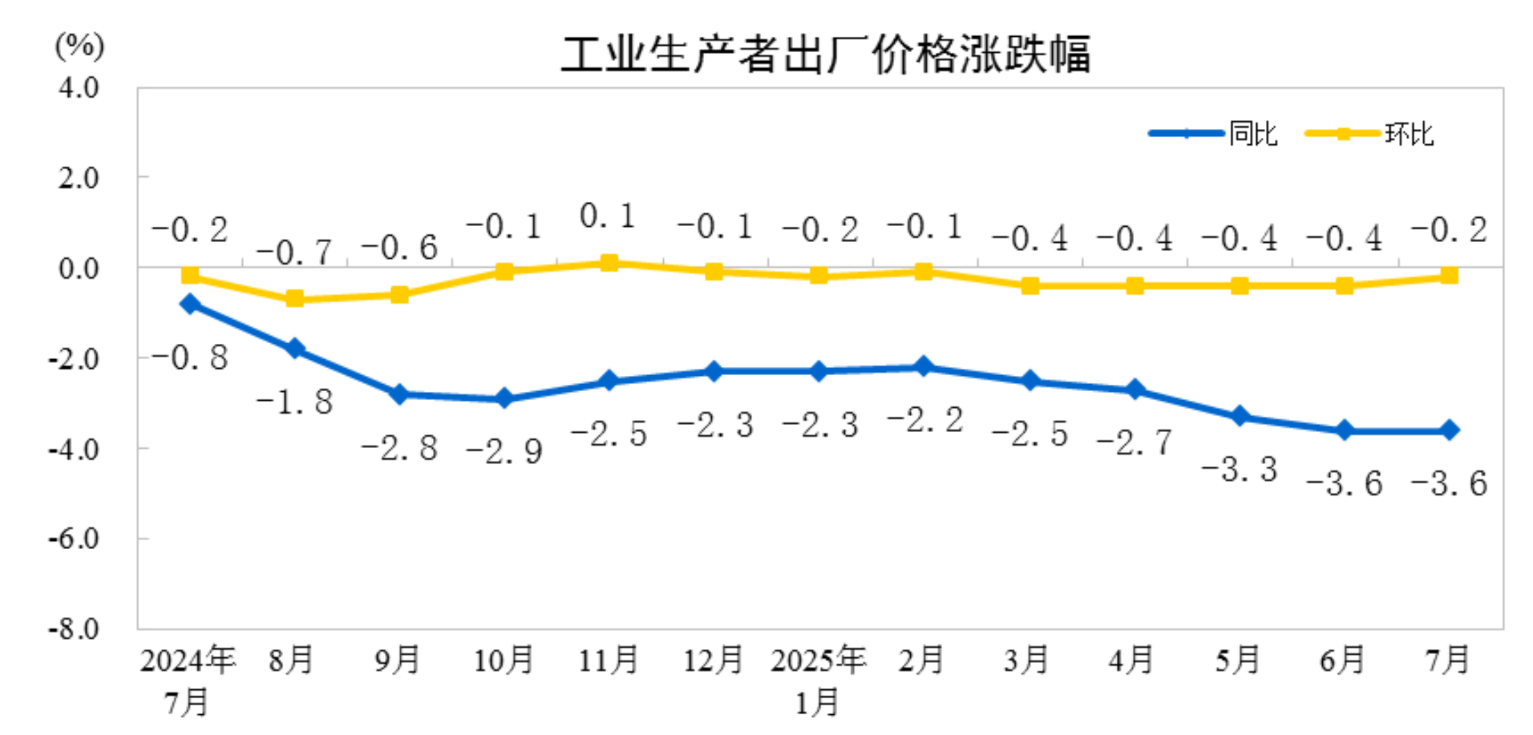 2025年7月份工业生产者出厂价格环比降幅收窄