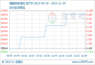 11月份磷酸铁锂市场偏强运行动力型优等品均价17万元/吨