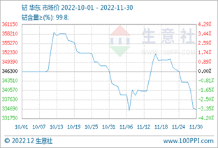 截止11月30日,国内钴均价334600元/吨,较11月1日钴价342700元/吨下跌,跌幅2.36%;较10月30日钴价348300元/吨下跌,跌幅3.93%。11月国内钴价...2022-12-02 10:10:02