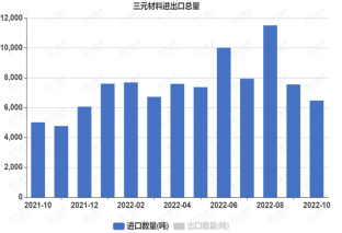 一、三元材料 1进口 截止到2022年10月,国内三元材料进口量达到6480.136吨,较上月有所下滑。从进口国家上来看,国内三元材料的进口国来自韩国、日本,分别占...2022-11-28 16:24:46