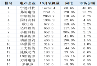 10月中国市场装机量TOP10排名再生变