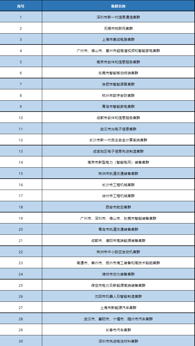 附:国家先进制造业集群名单