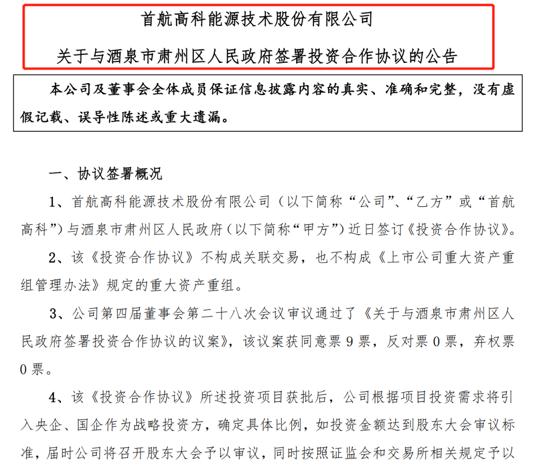 首航高科(4.350, -0.46, -9.56%)8月3日晚间公告,公司与酒泉市肃州区人民政府近日签订投资合作协议,公司拟投建“200MW光热+800MW风电+520MW光伏”的光热(储)新能源多能互补一体化大基地项目,预计投资金额100亿元至110亿元。