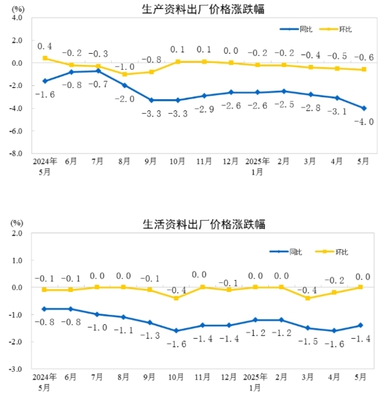 2025年5月份工业生产者出厂价格同比下降3.3%