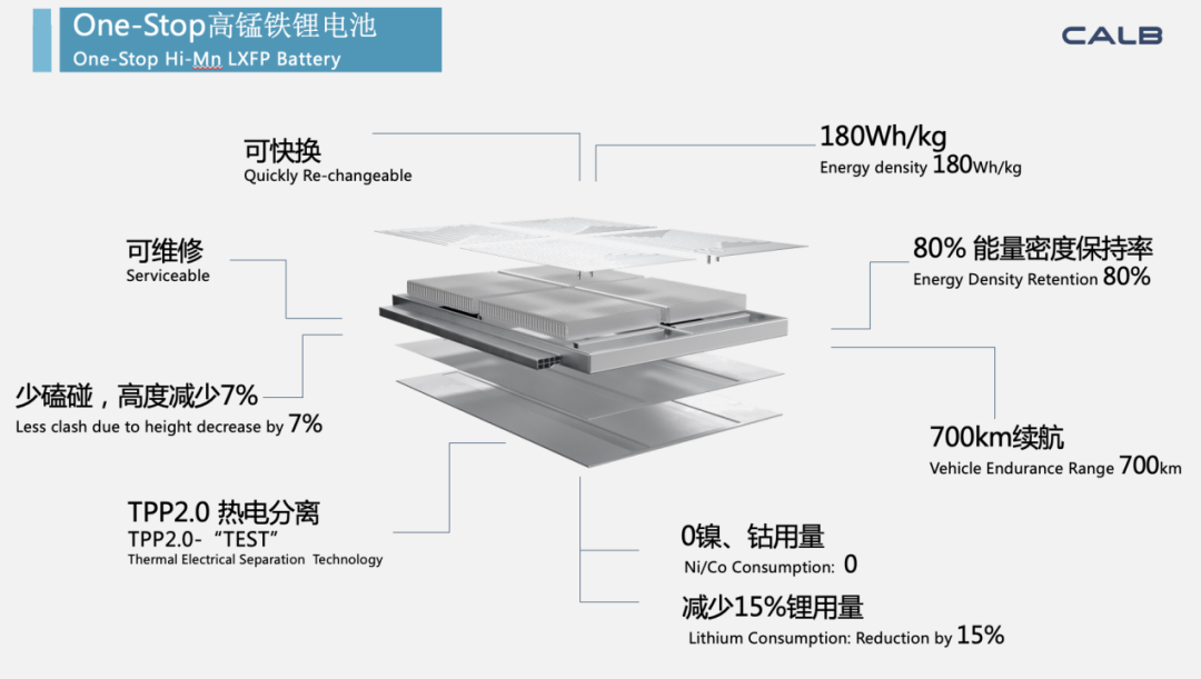 高工锂电了解到,该电池基于高锰铁锂材料的底层创新,结合此前发布的One-Stop极简电池技术,同时在系统层级搭载了新的TPP2.0技术,终实现了成本、安全、续航、维护、回收等各个维度的全新突破。
