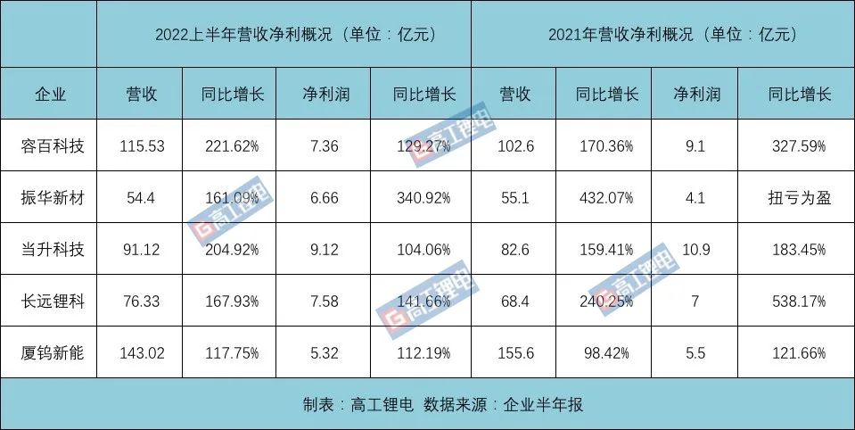 市场数据显示,2021年,容百科技、厦钨新能等三元材料头部企业的营收净利同比均出现1-2倍增长,净利润高增幅甚至超5倍。