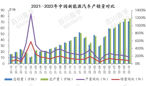 新能源汽车产业的高速增长直接带动了动力电池需求增长,是锂电池市场的主要增长点。中汽协数据显示,10月我国新能源汽车产销量再创新高,分别达76.2万辆和71.4万辆,同比增长分别为87.6%和81.7%,市场占有率达28.5%。10月,我国动力电池产量共计62.8GWh,同比增长150.1%,环比增长6.2%。1-10月,我国动力电池累计产量425.9GWh,累计同比增长166.5%,呈现快速增长发展势头。